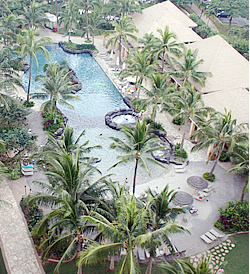 ■梶原: まず、2つある寝室が広々としていてリラックスできることがいいですね。今回は、贅沢にひとり一部屋ずつ使っています。それから、各部屋に洗濯機があり、毎日洗濯が出来るのはすごく便利。あと、コオリナ・リゾート内ならどこででもルーム・チャージできるのも便利ですね。例えば、イヒラニ・ホテルのお店などでもOKなんです。 ■編集部:コオリナ・リゾート内でおすすめのアメニティや施設などありますか? ■梶原:マリオット・コオリナ・ビーチクラブの1階にバーベキュー・ガーデンが2ヶ所あって、夕方になるといつも人が集まっていますね。私たちも、カポレイの町にあるセーフウェイで買ってきた肉をグリルで焼いて、部屋に持ち帰って食べています。フィットネス・クラブは使いたい放題だし、プールにはジャグジーやカフェもあったりしてリラックスできますね。あと、リゾート内にあるゴルフ場ではゲスト料金でプレイ出来るのがいいですね。リゾート内では、シャトル・バスでホテルの間を行き来できるので、そちらも頻繁に利用しています。 |