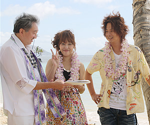 大切な方からのプレゼントは、ハワイでのビーチウエディング!今回は、この美しく穏やかなワイアラエ・ビーチで、2011年10月24日(月)の暑すぎず爽やかな午前11時、感動のウエディングを同時に挙げられた3組のカップルを取材させていただきました。 この3組が挙式されたのは、ビーチウエディングのパイオニアであり、13年の業績を持つ「ハワイのビーチウェディングJ社」による、「ビーチウエディング・シンプルプラン」です。 今回、挙式をされたのは福岡で美容院の自営業をされている3組のカップル、柴山哲平・つばさ夫妻、吉原祐治・由里子夫妻、原正則・愛夫妻です。 |